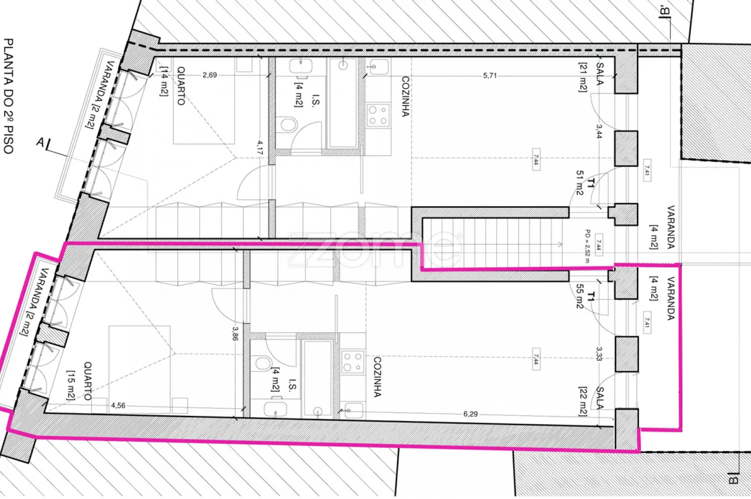 This is an apartment on the 2nd right floor, without elevator, on 2 fronts, with a balcony facing the Douro River and with a gross private area of 55 m2.