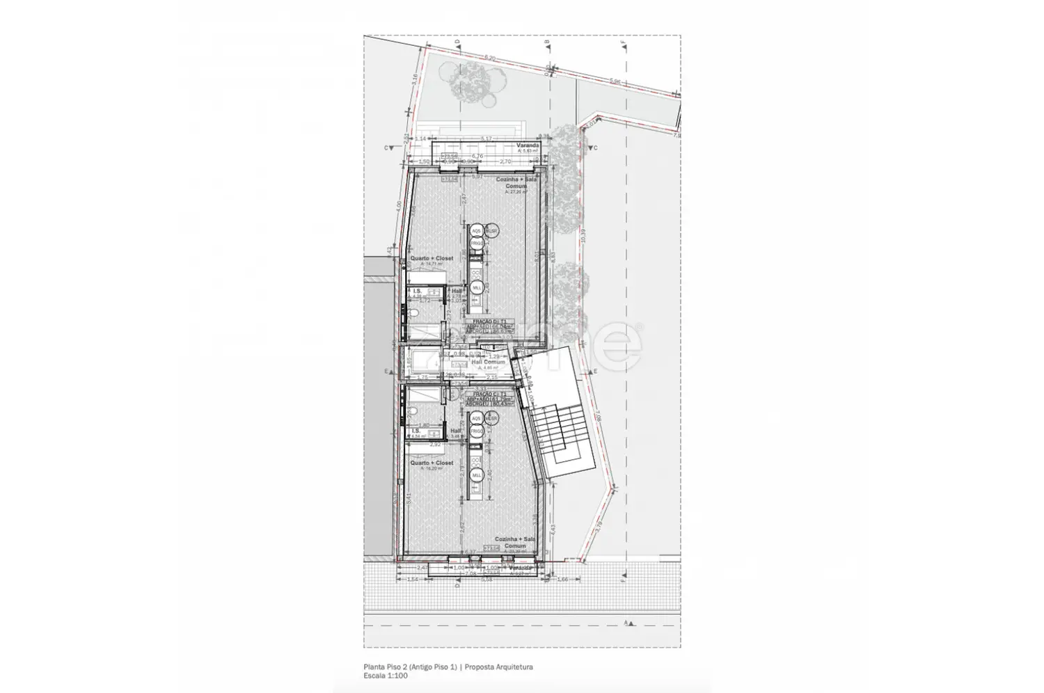 O edifício é composto por três pisos acima da cota de soleira, onde coabitam cinco frações de tipologias diversas, nomeadamente T1, T1+1Duplex e T2 Duplex.