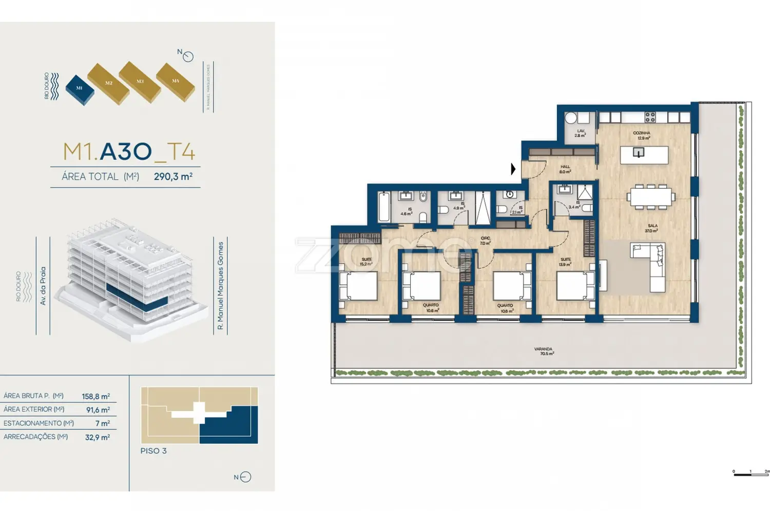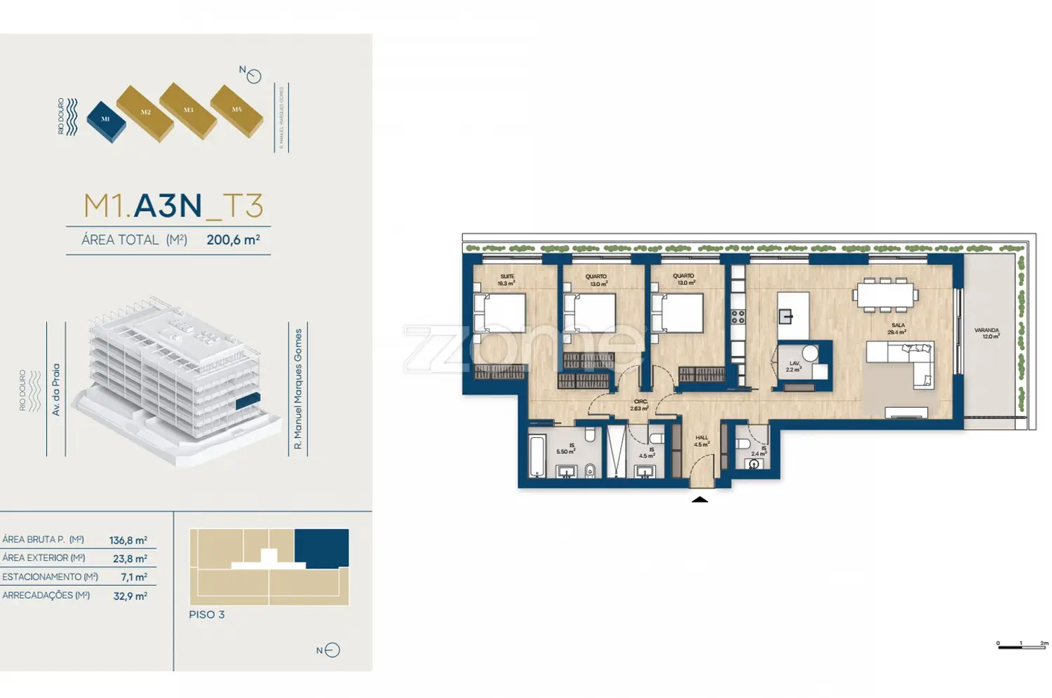 The Marina Douro Project incorporates all the essential aspects of comfortable family living. Residents will have access to the garden and playground common to the buildings, contributing to a greater spirit of community and conviviality among families. All apartments have private parking spaces in the garage of their building.