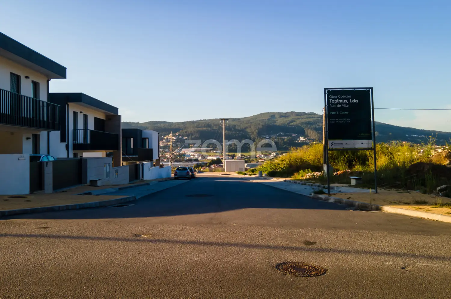 The development has a public space design with parking spaces and unobstructed views of the valley that surrounds the parish of Vale de São Cosme.